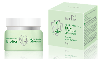 Нощната крем-маска „Биотикс“ от Vita Derm е идеална за чувствителна кожа, като успокоява сърбежа и зачервяването, възстановява микробиома и укрепва бариерните функции. Съдържа пребиотици, водорасли хлорела и 4D хиалуронова киселина за дълбока хидратация и антистареещ ефект. Нанесете я през нощта без изплакване.